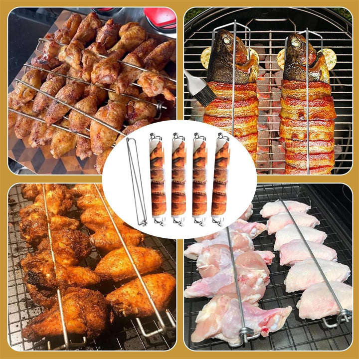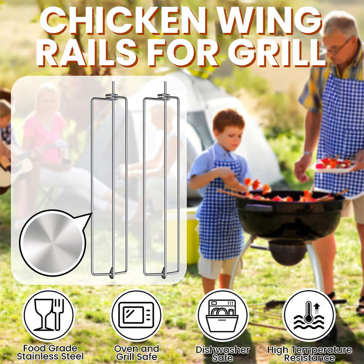 Our Chicken Wing Grilling Rails feature a convenient design that allows you to grill multiple chicken wings at the same time.   This means more delicious food in less time, perfect for outdoor picnics, camping trips, and barbecues.