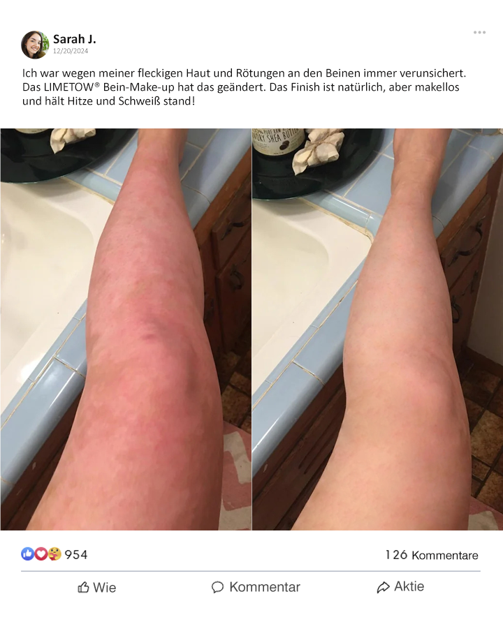 Benutzer berichten glattere, gleichmäßige Beine ohne Rückstände, Klebigkeit oder Übertragung. LIMETOW® Bein Make-up bietet einen bleibenden, leichten Glanz und ist die perfekte Wahl für alltägliches Selbstvertrauen oder besondere Aktivitäten.