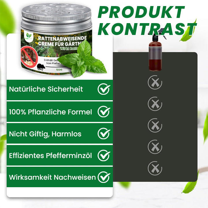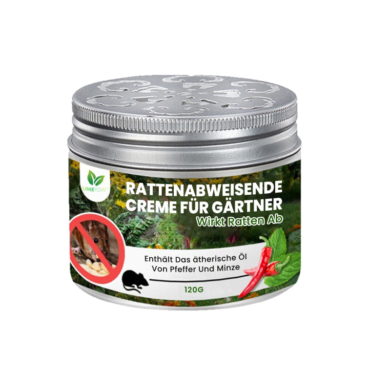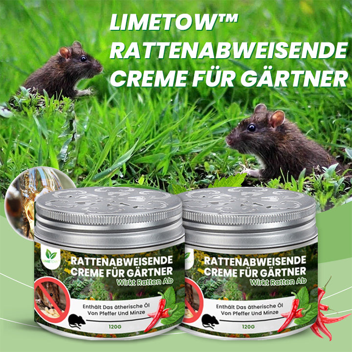 LIMETOW™ Rattenabwehrcreme hält Nagetiere auf natürliche Weise aus Ihrem Garten fern. Hergestellt aus pflanzlichen Inhaltsstoffen wie Minz- und rotem Paprikaöl, schützt sie Ihre Pflanzen sicher und effektiv mit einer langanhaltenden, nicht stechenden Formel.